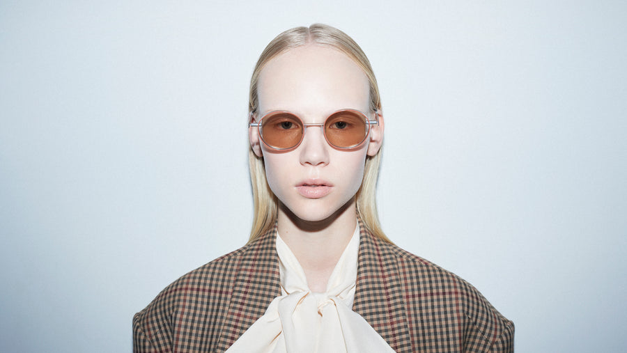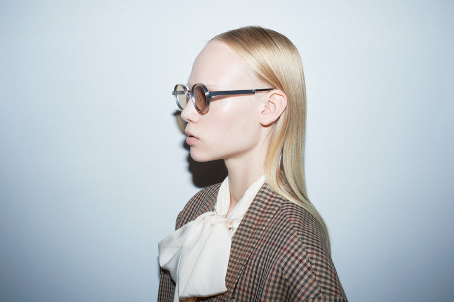 フラットな金属が次元の空間で組み上がることで独特のラインを作り上げたアイウエア「TWOFACE」。正面と側面から見たかけ姿の印象が変わるといった性格を持っています。そして大胆なレンズカットによるデザイン。設計と構造が生み出した必然性でカットされたレンズの形状が一つのアクセントとなっています。