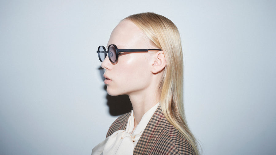 TWO FACE is eyewear that features unique lines created by assembling flat metal in three dimensions. It offers different appearances of the wearer when seen from the front and from the side. The bold shape of the lens is defined by the design and structure that adds character to the look.