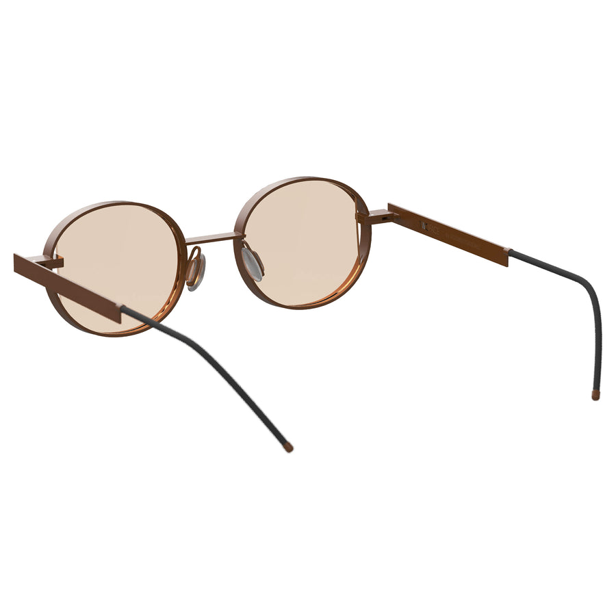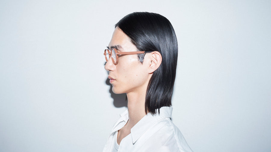 TWO FACE is eyewear that features unique lines created by assembling flat metal in three dimensions. It offers different appearances of the wearer when seen from the front and from the side. The bold shape of the lens is defined by the design and structure that adds character to the look.