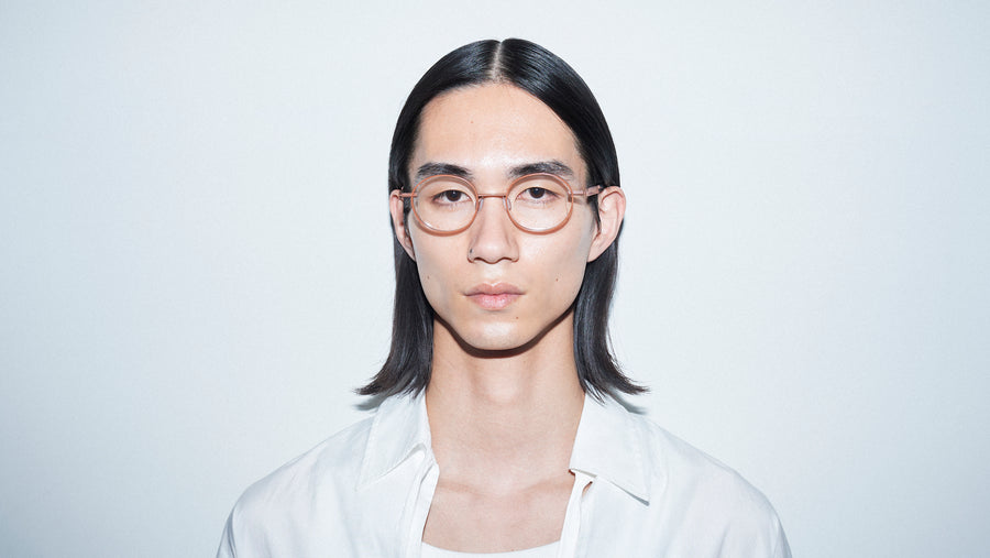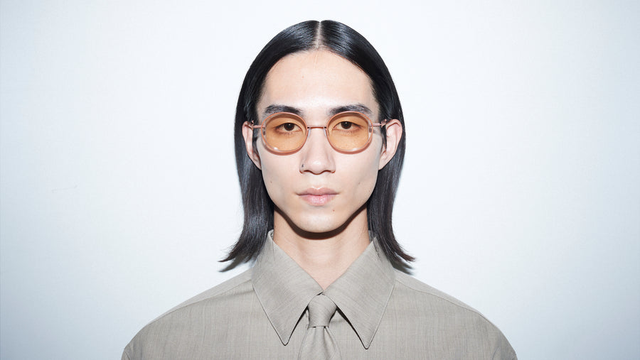 フラットな金属が次元の空間で組み上がることで独特のラインを作り上げたアイウエア「TWOFACE」。正面と側面から見たかけ姿の印象が変わるといった性格を持っています。そして大胆なレンズカットによるデザイン。設計と構造が生み出した必然性でカットされたレンズの形状が一つのアクセントとなっています。