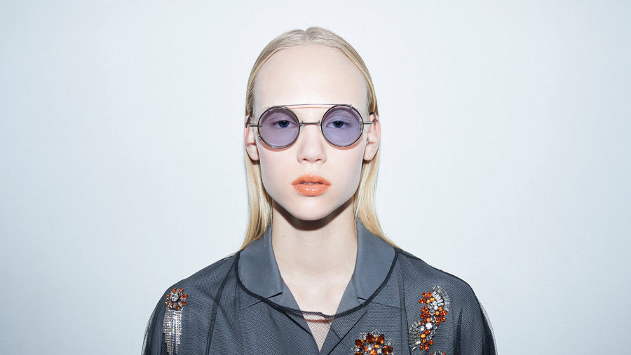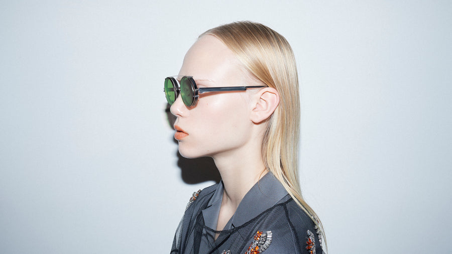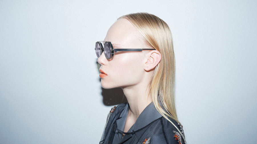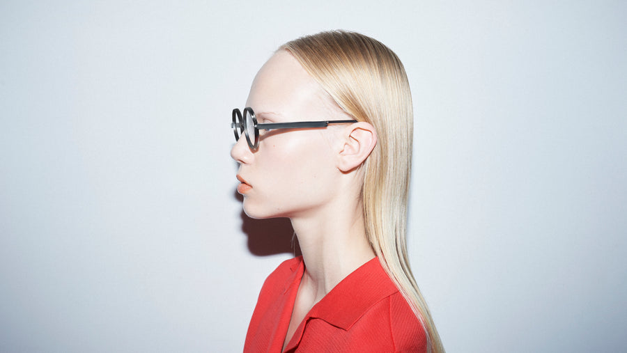 TWO FACE is eyewear that features unique lines created by assembling flat metal in three dimensions. It offers different appearances of the wearer when seen from the front and from the side. The bold shape of the lens is defined by the design and structure that adds character to the look.
