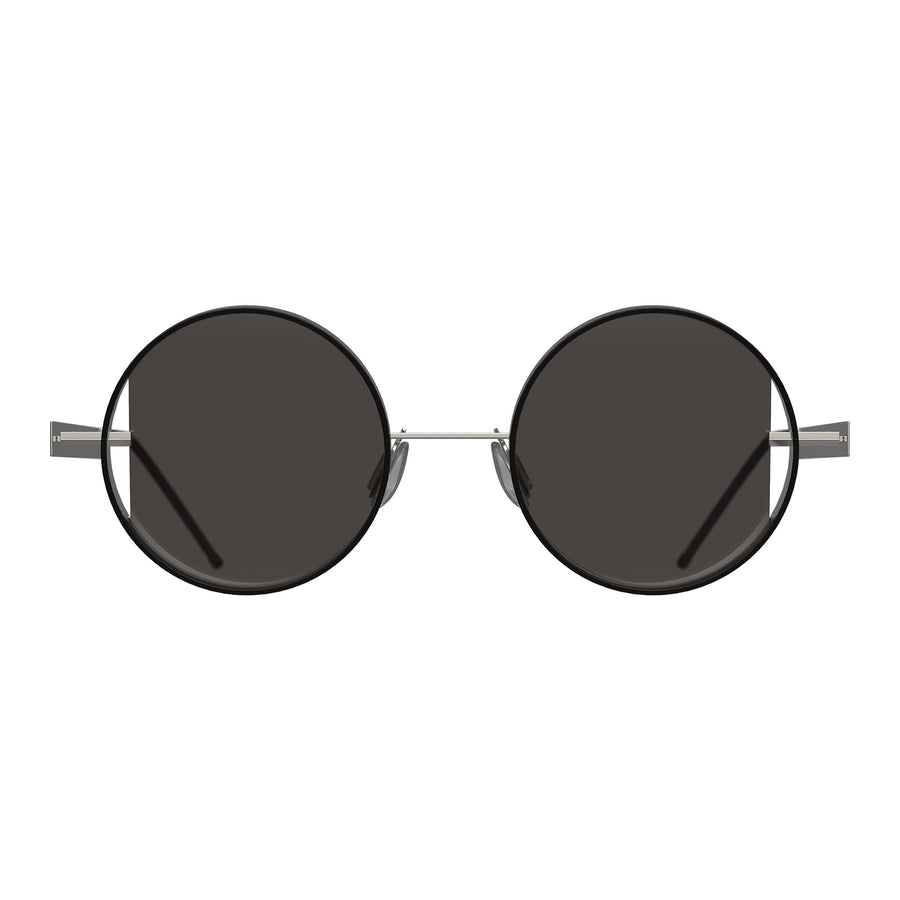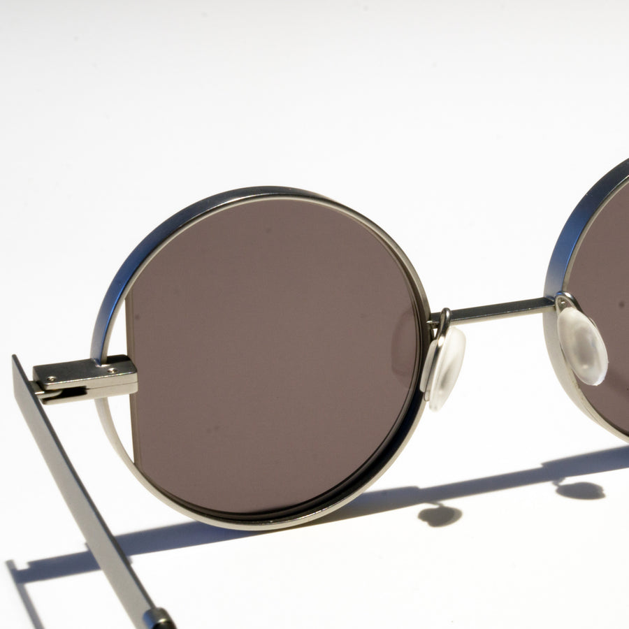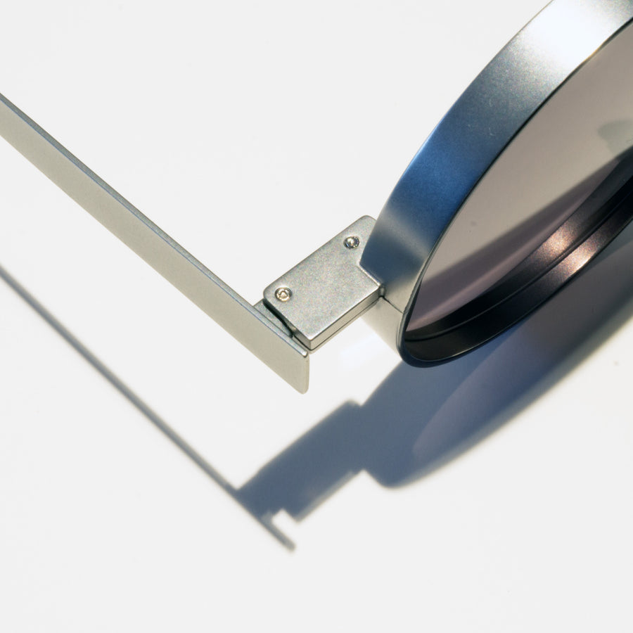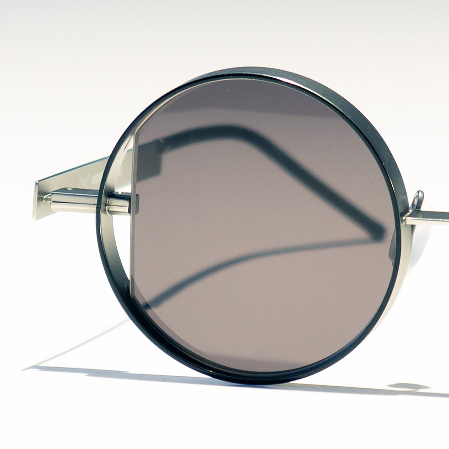 TWO FACE is eyewear that features unique lines created by assembling flat metal in three dimensions. It offers different appearances of the wearer when seen from the front and from the side. The bold shape of the lens is defined by the design and structure that adds character to the look.