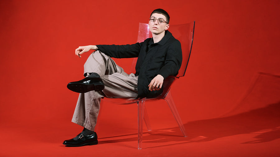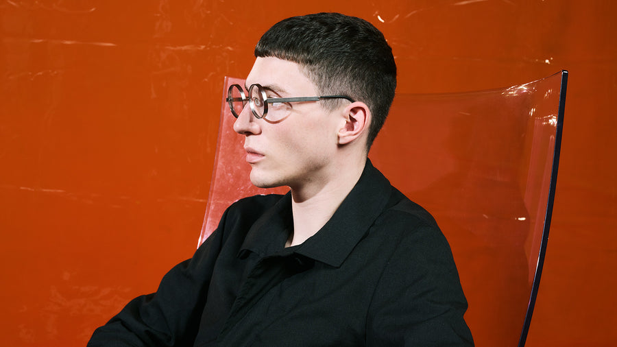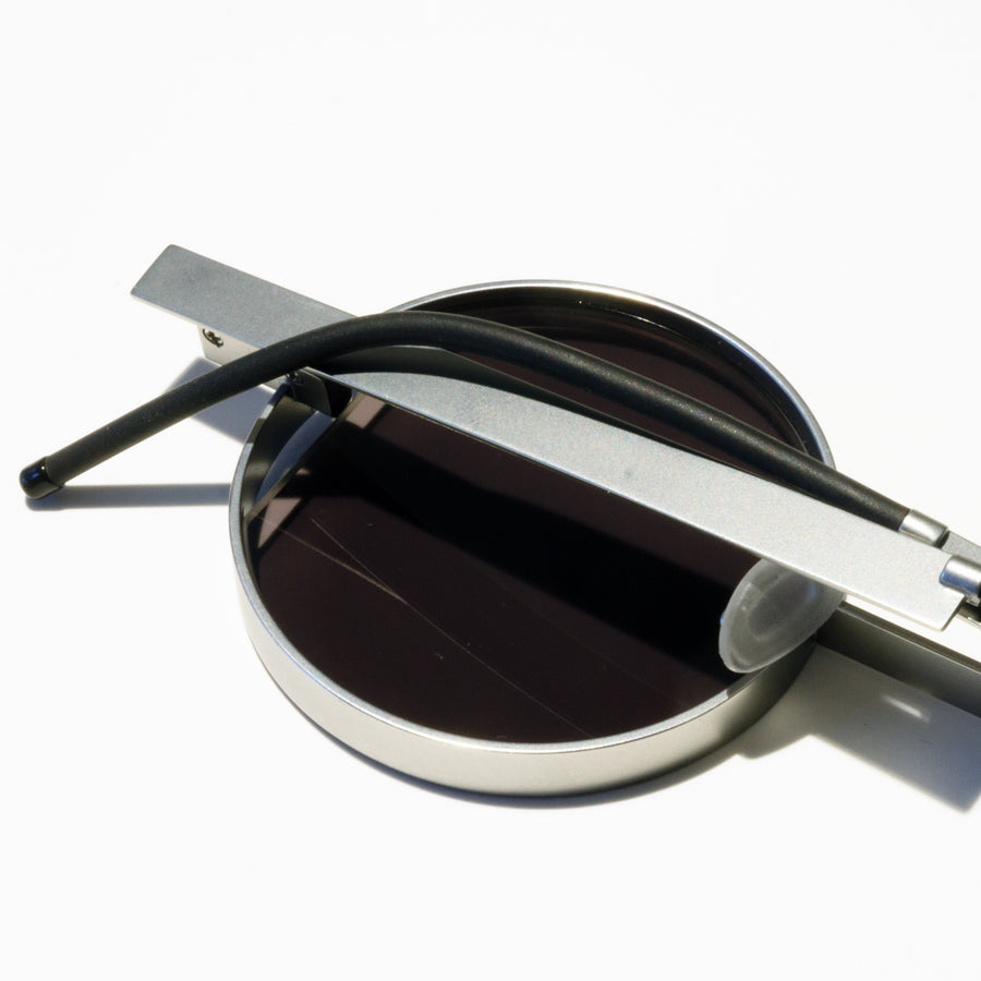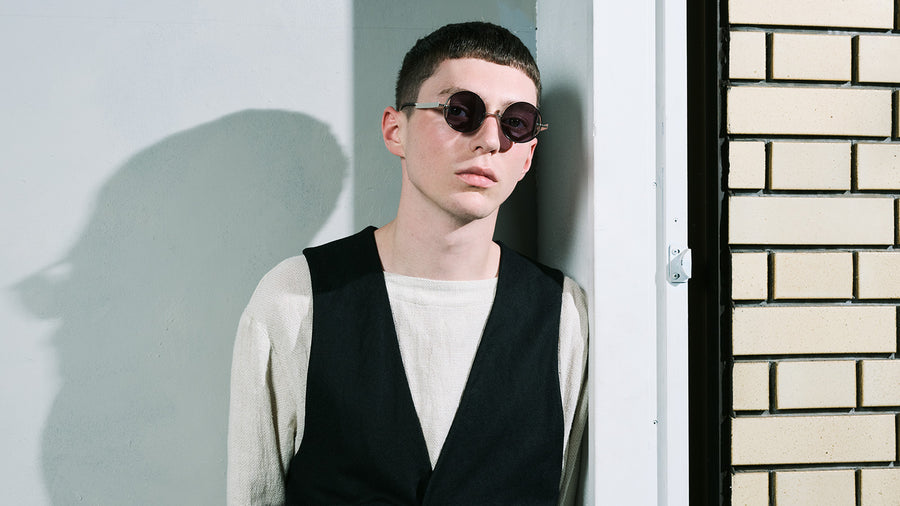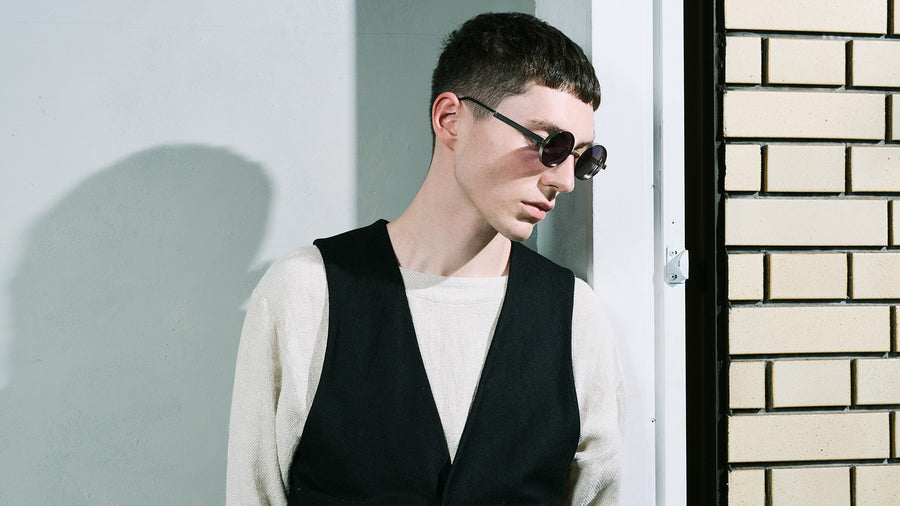 フラットな金属が次元の空間で組み上がることで独特のラインを作り上げたアイウエア「TWOFACE」。正面と側面から見たかけ姿の印象が変わるといった性格を持っています。そして大胆なレンズカットによるデザイン。設計と構造が生み出した必然性でカットされたレンズの形状が一つのアクセントとなっています。