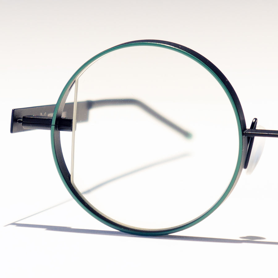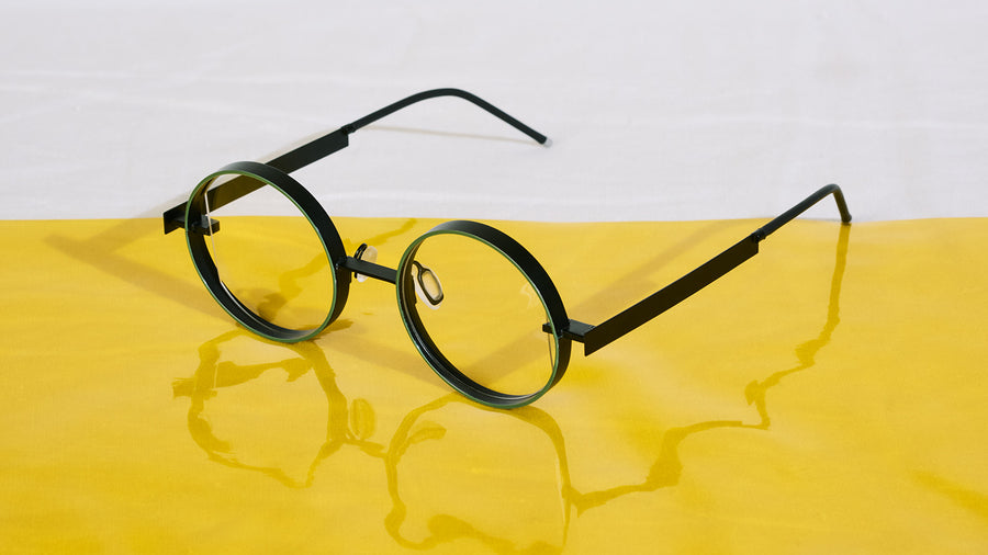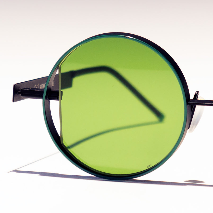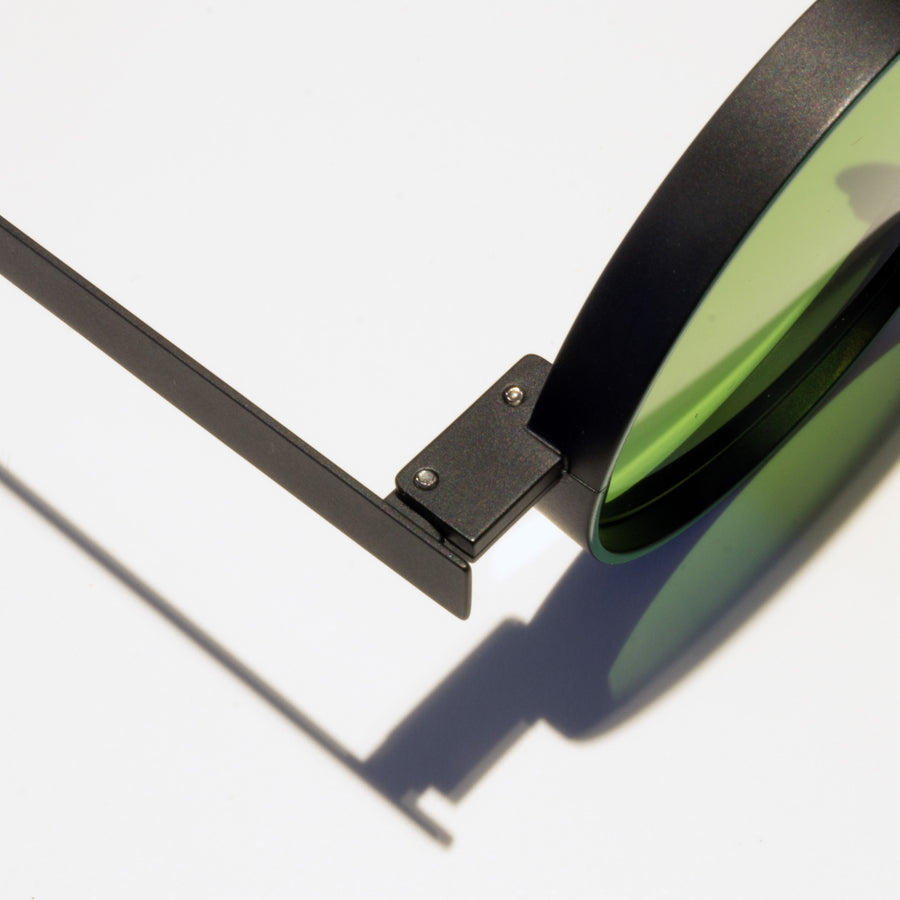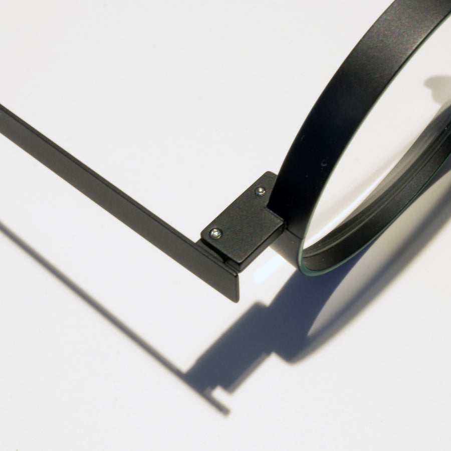 フラットな金属が次元の空間で組み上がることで独特のラインを作り上げたアイウエア「TWOFACE」。正面と側面から見たかけ姿の印象が変わるといった性格を持っています。そして大胆なレンズカットによるデザイン。設計と構造が生み出した必然性でカットされたレンズの形状が一つのアクセントとなっています。
