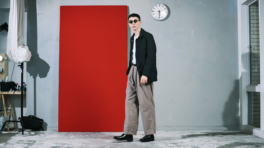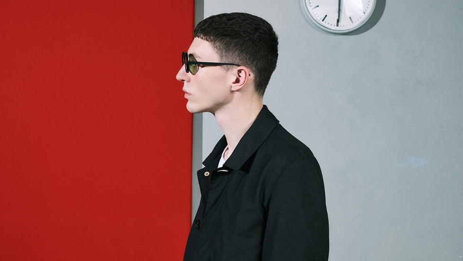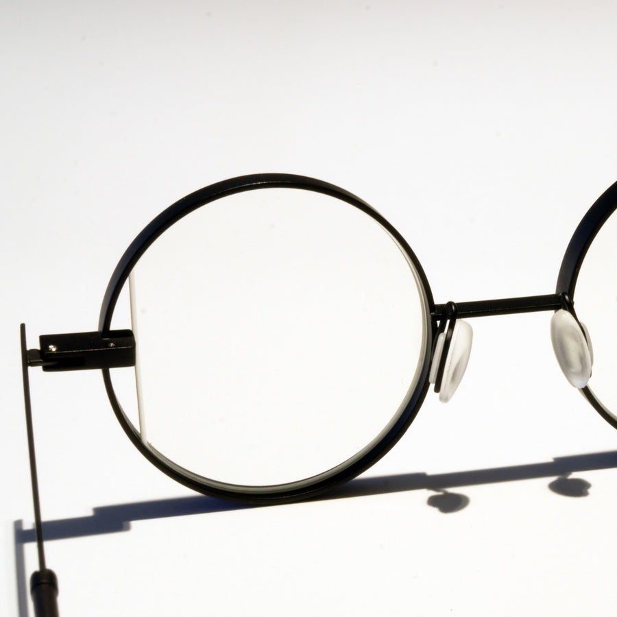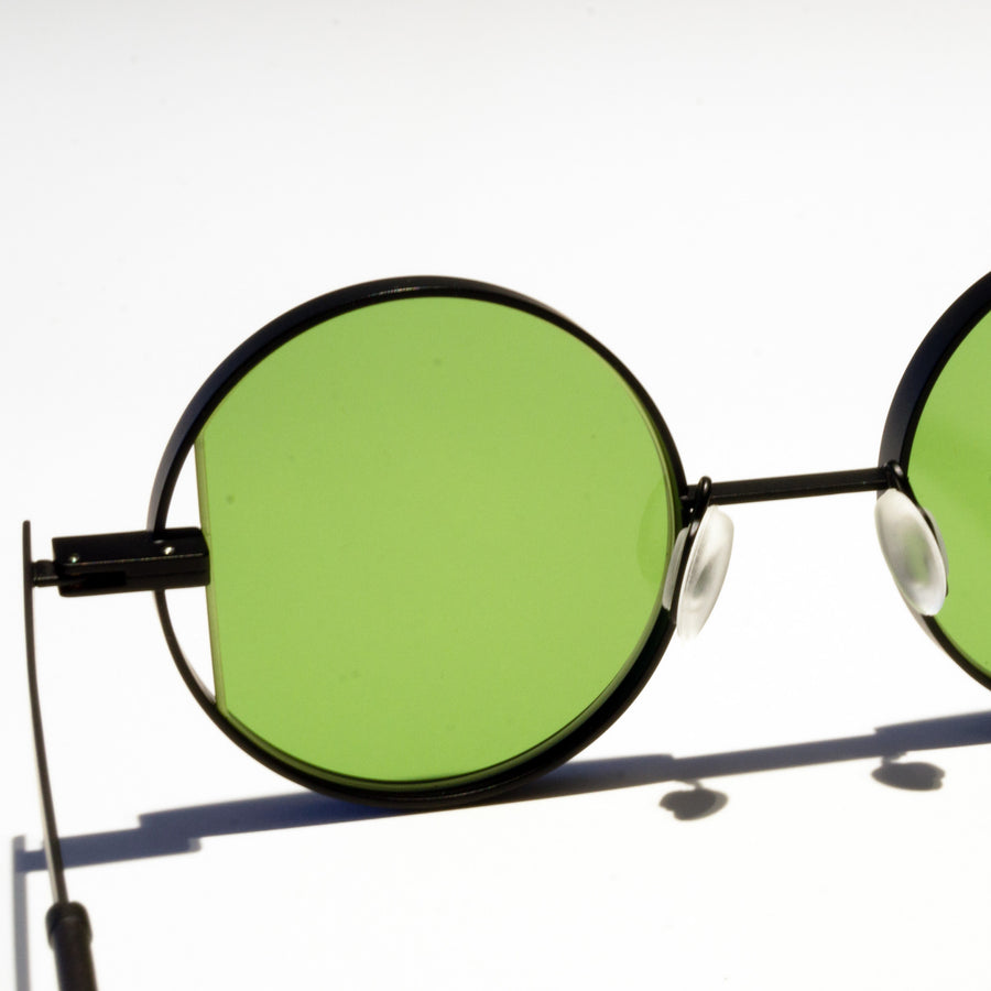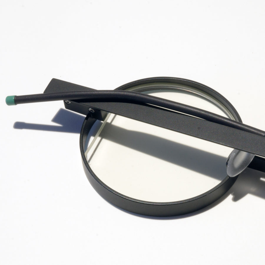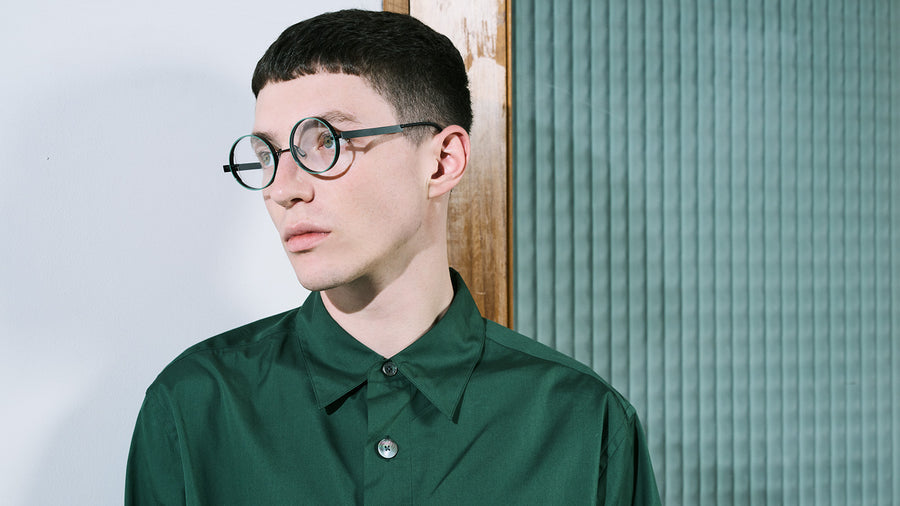 フラットな金属が次元の空間で組み上がることで独特のラインを作り上げたアイウエア「TWOFACE」。正面と側面から見たかけ姿の印象が変わるといった性格を持っています。そして大胆なレンズカットによるデザイン。設計と構造が生み出した必然性でカットされたレンズの形状が一つのアクセントとなっています。