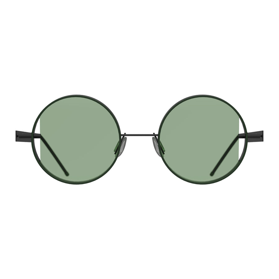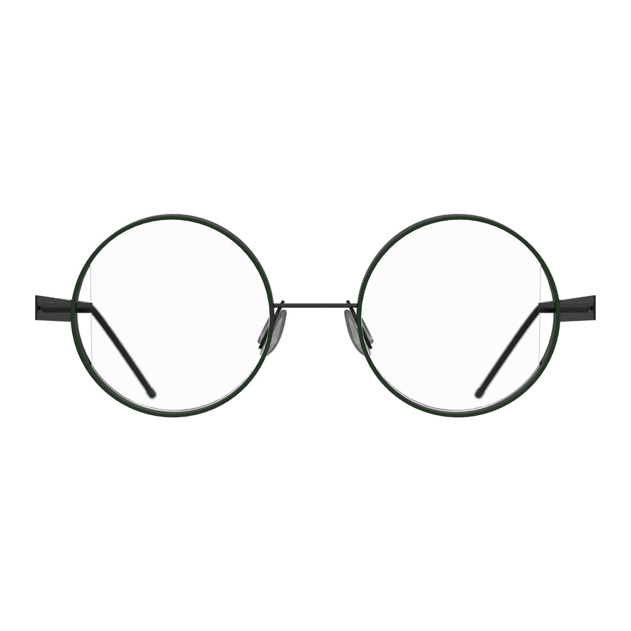 TWO FACE is eyewear that features unique lines created by assembling flat metal in three dimensions. It offers different appearances of the wearer when seen from the front and from the side. The bold shape of the lens is defined by the design and structure that adds character to the look.