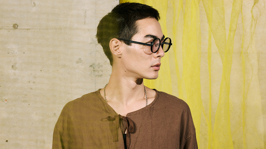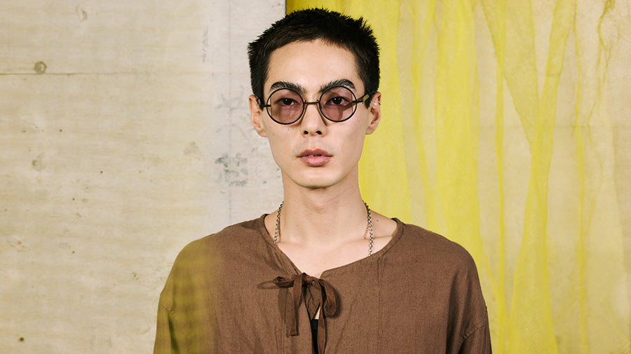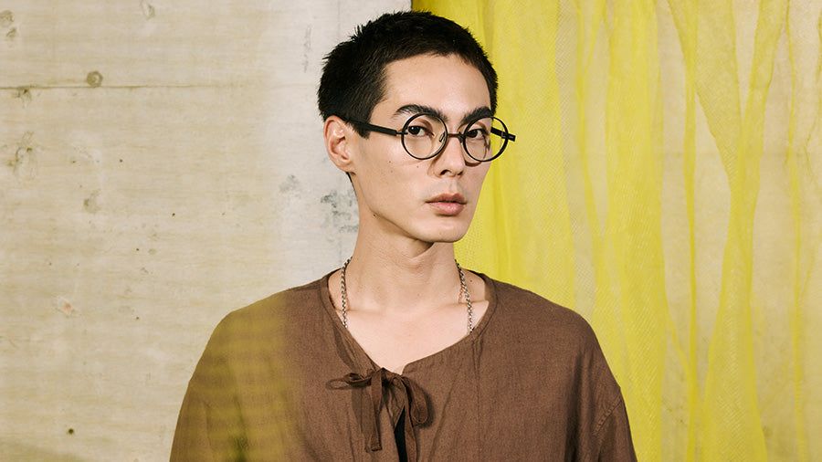 フラットな金属が次元の空間で組み上がることで独特のラインを作り上げたアイウエア「TWOFACE」。正面と側面から見たかけ姿の印象が変わるといった性格を持っています。そして大胆なレンズカットによるデザイン。設計と構造が生み出した必然性でカットされたレンズの形状が一つのアクセントとなっています。