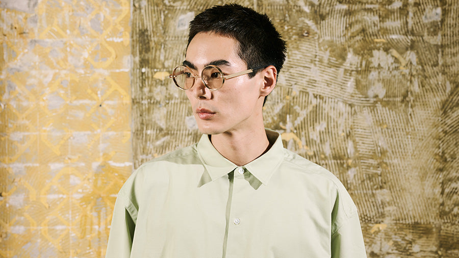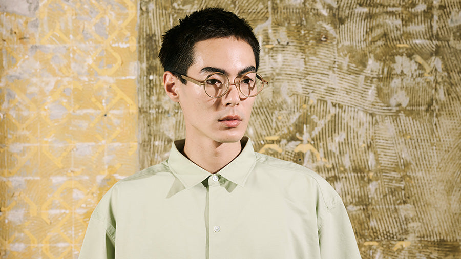 フラットな金属が次元の空間で組み上がることで独特のラインを作り上げたアイウエア「TWOFACE」。正面と側面から見たかけ姿の印象が変わるといった性格を持っています。そして大胆なレンズカットによるデザイン。設計と構造が生み出した必然性でカットされたレンズの形状が一つのアクセントとなっています。