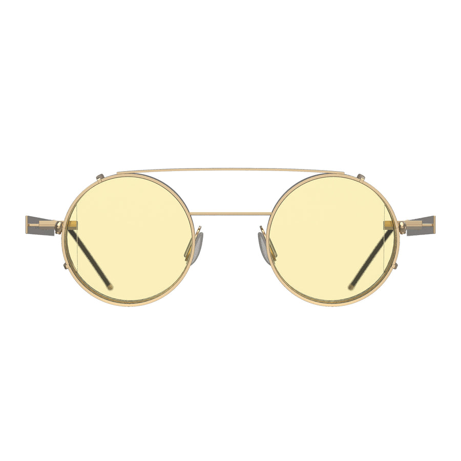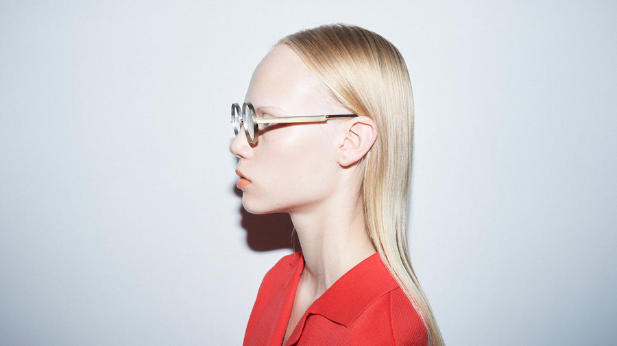 TWO FACE is eyewear that features unique lines created by assembling flat metal in three dimensions. It offers different appearances of the wearer when seen from the front and from the side. The bold shape of the lens is defined by the design and structure that adds character to the look.