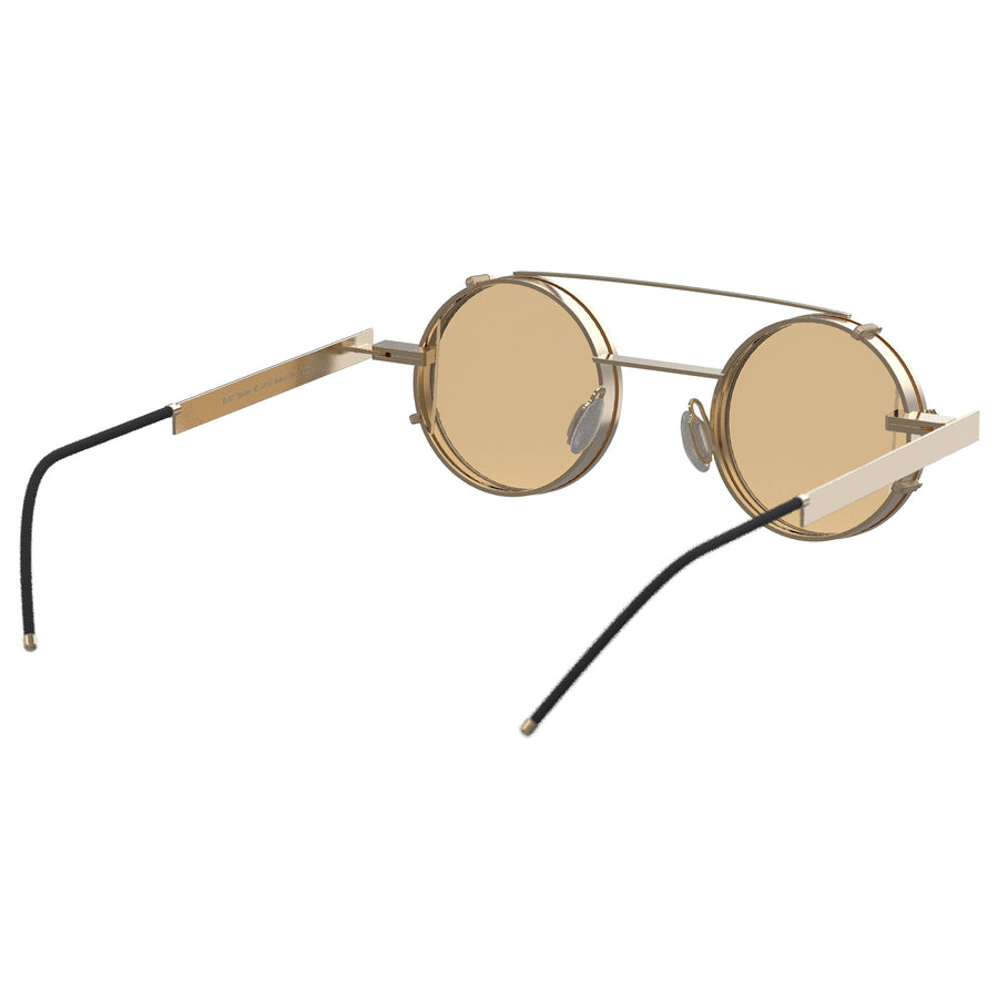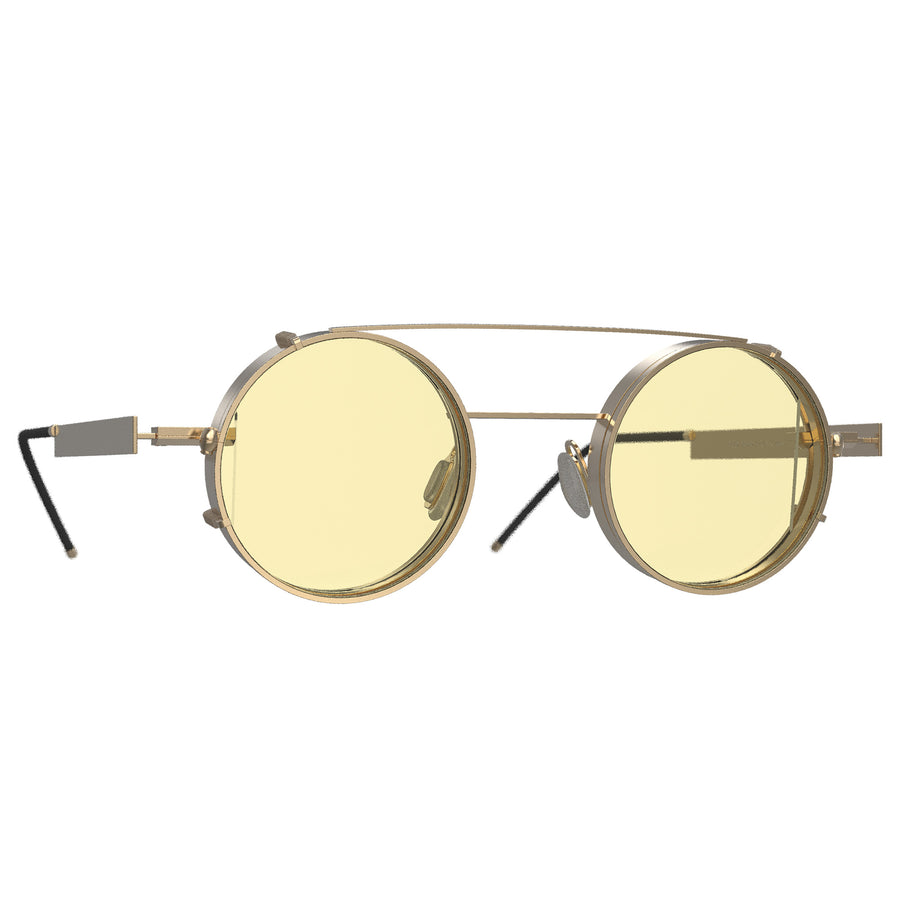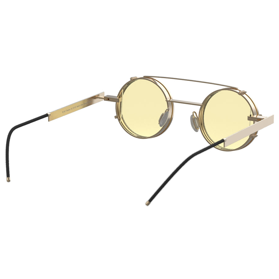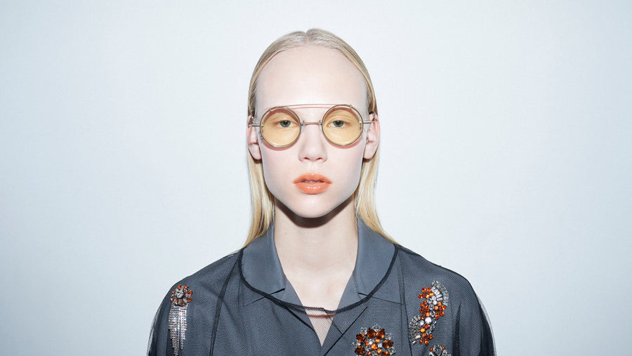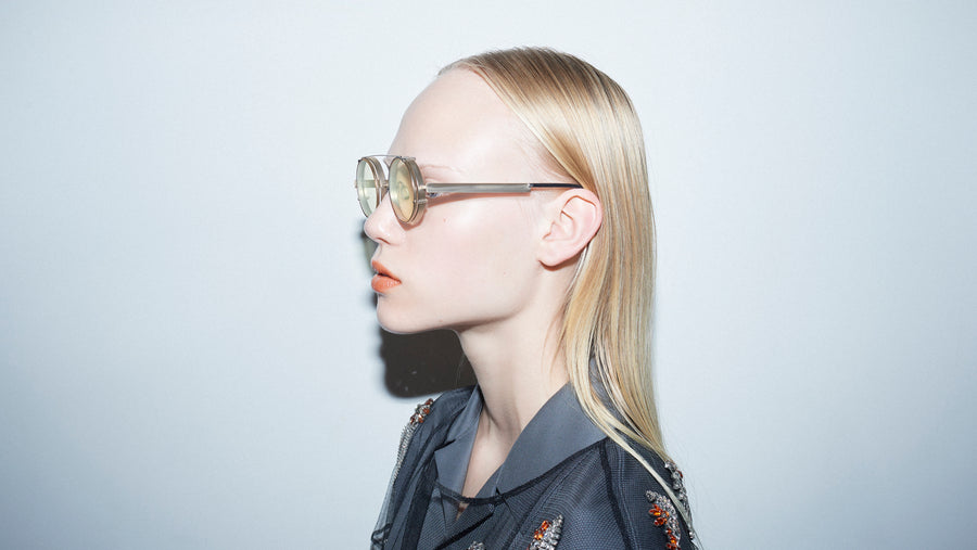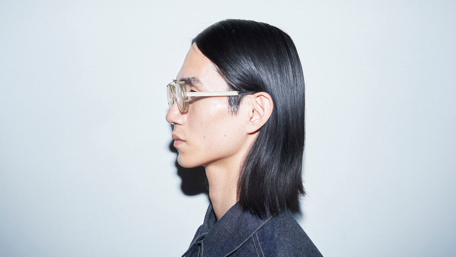 フラットな金属が次元の空間で組み上がることで独特のラインを作り上げたアイウエア「TWOFACE」。正面と側面から見たかけ姿の印象が変わるといった性格を持っています。そして大胆なレンズカットによるデザイン。設計と構造が生み出した必然性でカットされたレンズの形状が一つのアクセントとなっています。